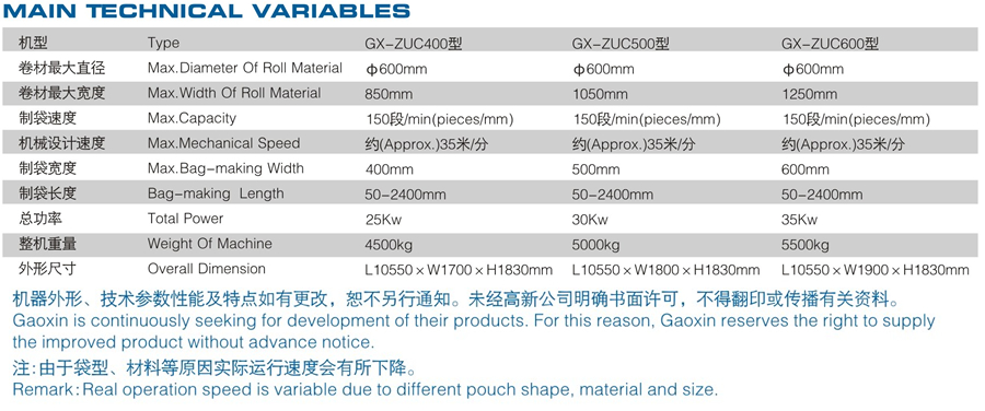 歡迎訪問溫州市正隆機械有限公司(瑞安市高新機械有限公司)!專業(yè)三邊封制袋機,三邊封拉鏈自立制袋機,氣泡膜制袋機。