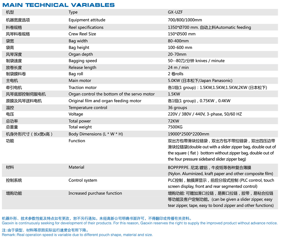 ZUF高速雙出方底袋拉鏈制袋機